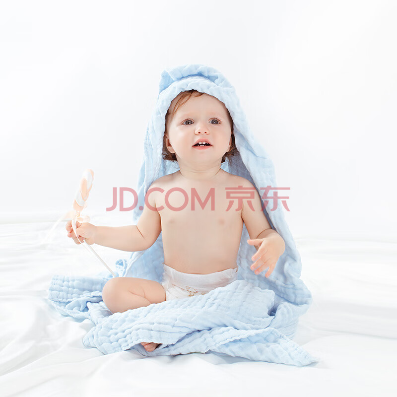商品相册:全棉时代 浴巾毛巾纯棉浴 礼盒装新生儿纱布浴巾婴儿毛巾6层115*115cm蓝色第