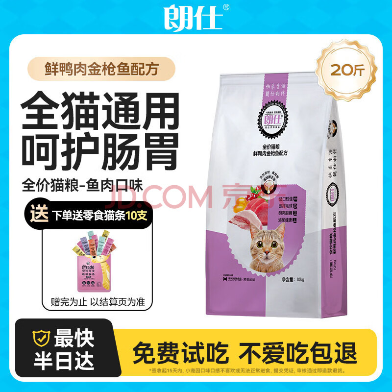 商品相册:朗仕猫粮 幼猫成猫 猫粮全阶段通用型高蛋白鱼肉味全价猫粮 10kg/20斤第
