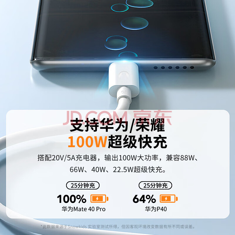 商品相册:SnowkidsType-C数据线100W超级快充6A5A适用华为充电线Mate6040Pro/P50荣耀小米安卓手机充电器线车载USB-C第