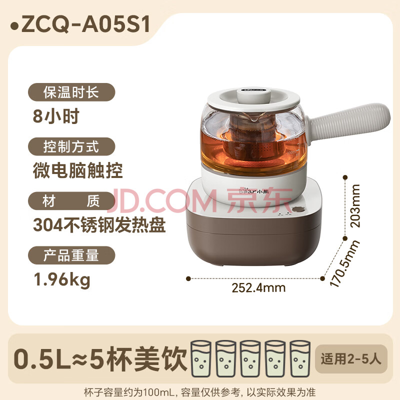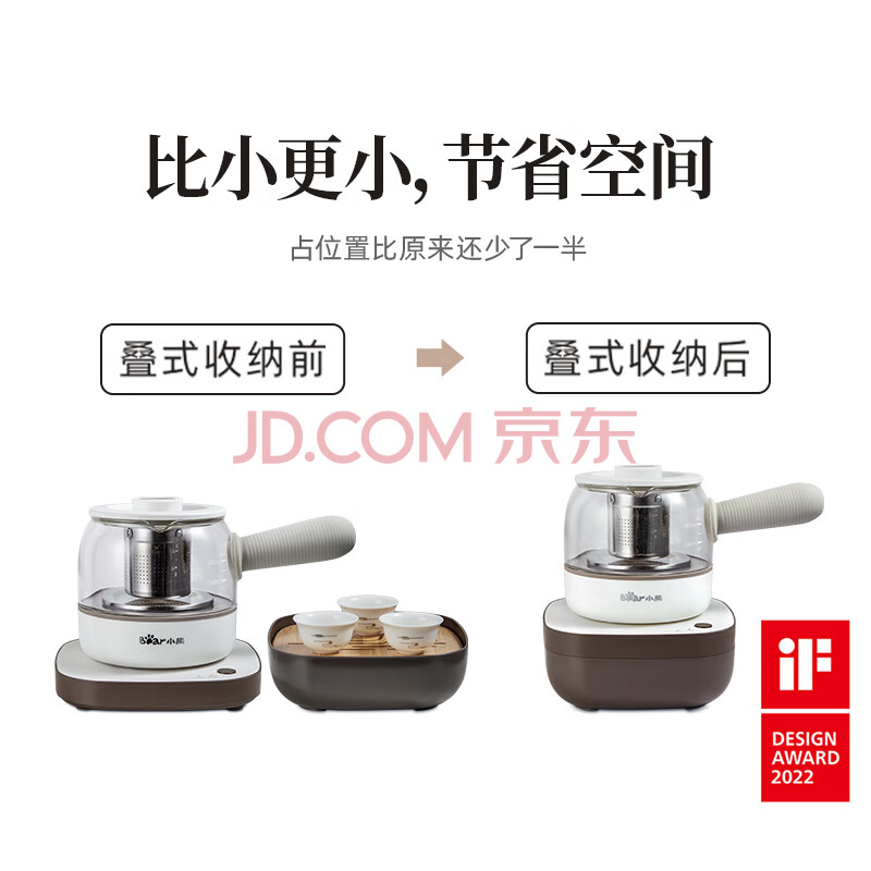 商品相册:小熊(Bear)煮茶器 煮茶壶养生壶便携式烧水壶家用蒸茶器0.5L创意收纳旅行花茶壶 ZCQ-A05S1 配茶盘茶杯第