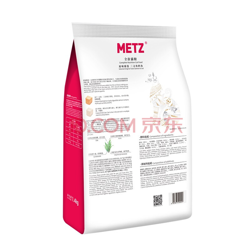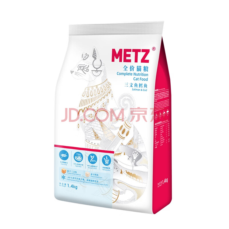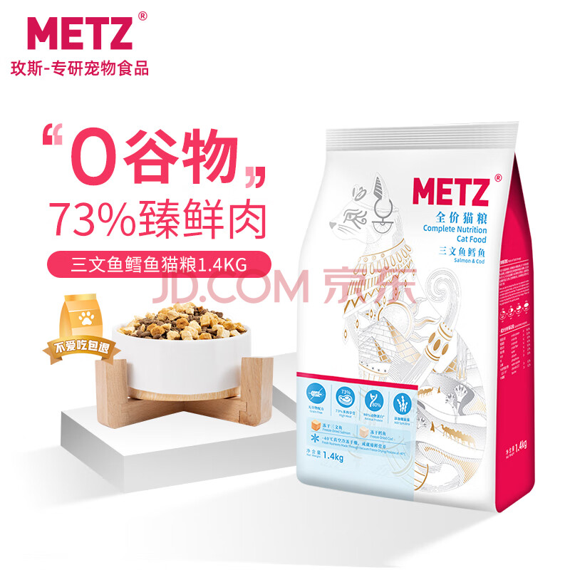 商品相册:玫斯(metz)原味臻选全价无谷双拼冻干猫粮1.4kg三文鱼鳕鱼增肥发腮第