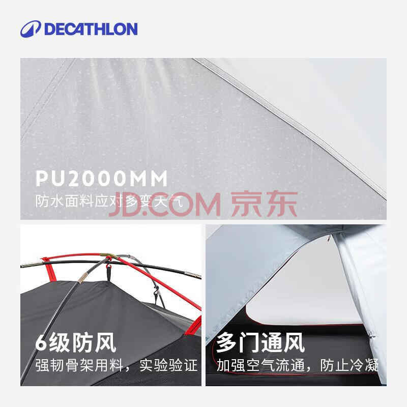 商品相册:迪卡侬帐篷黑胶F&B户外露营徒步防晒排热遮光速开MH100三人白色 2963895第