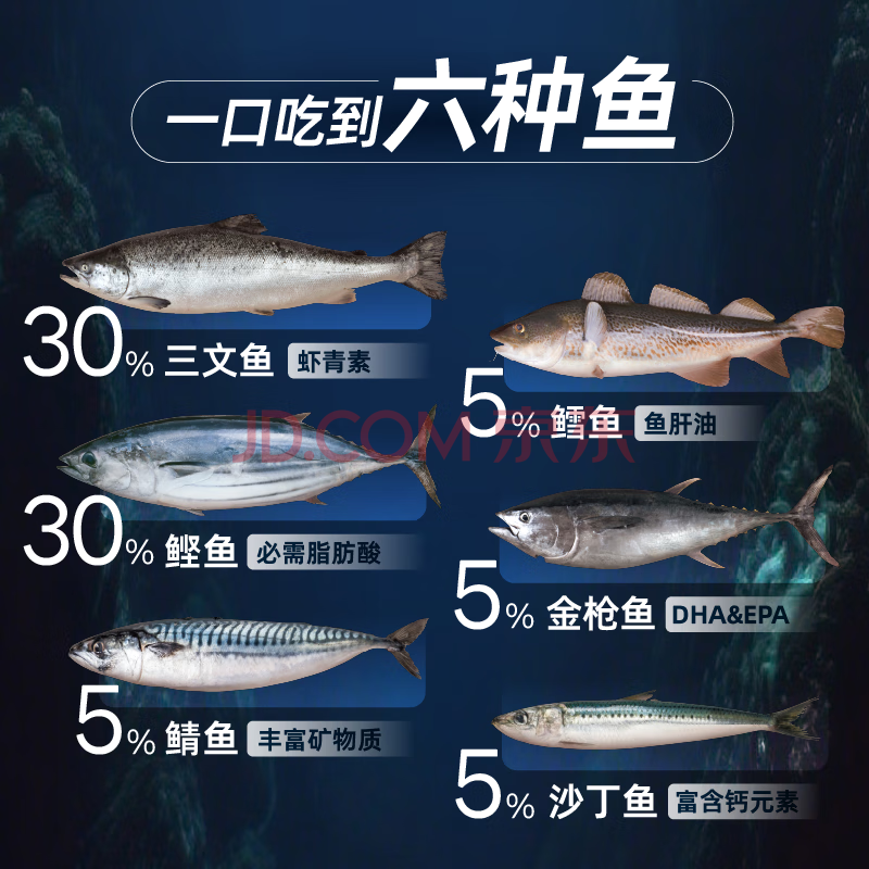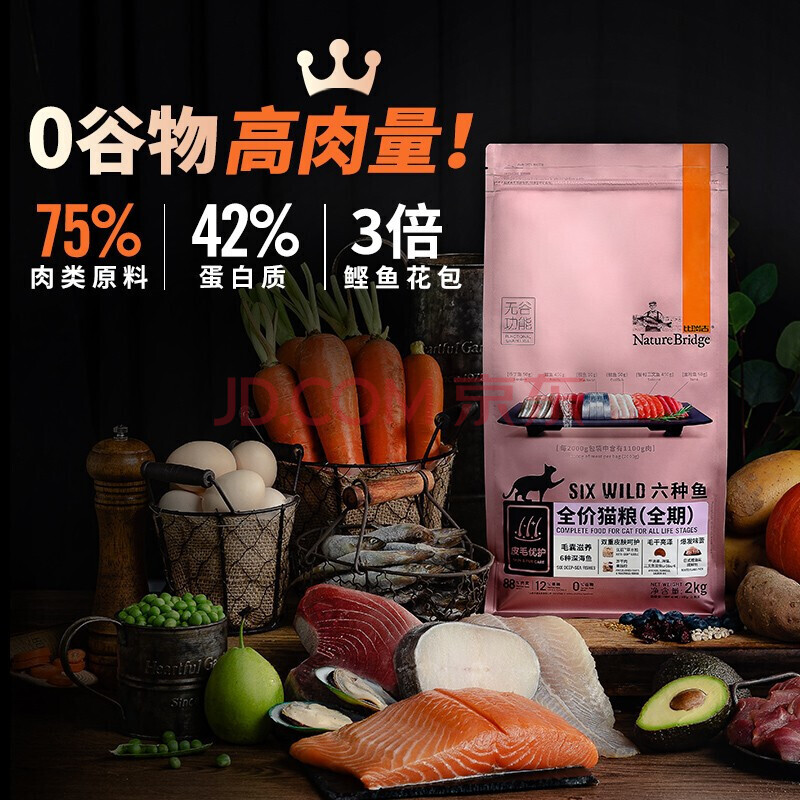 商品相册:比瑞吉六种鱼系列高蛋白三文鱼油无谷全价全期成猫幼猫粮2kg全年龄通用第