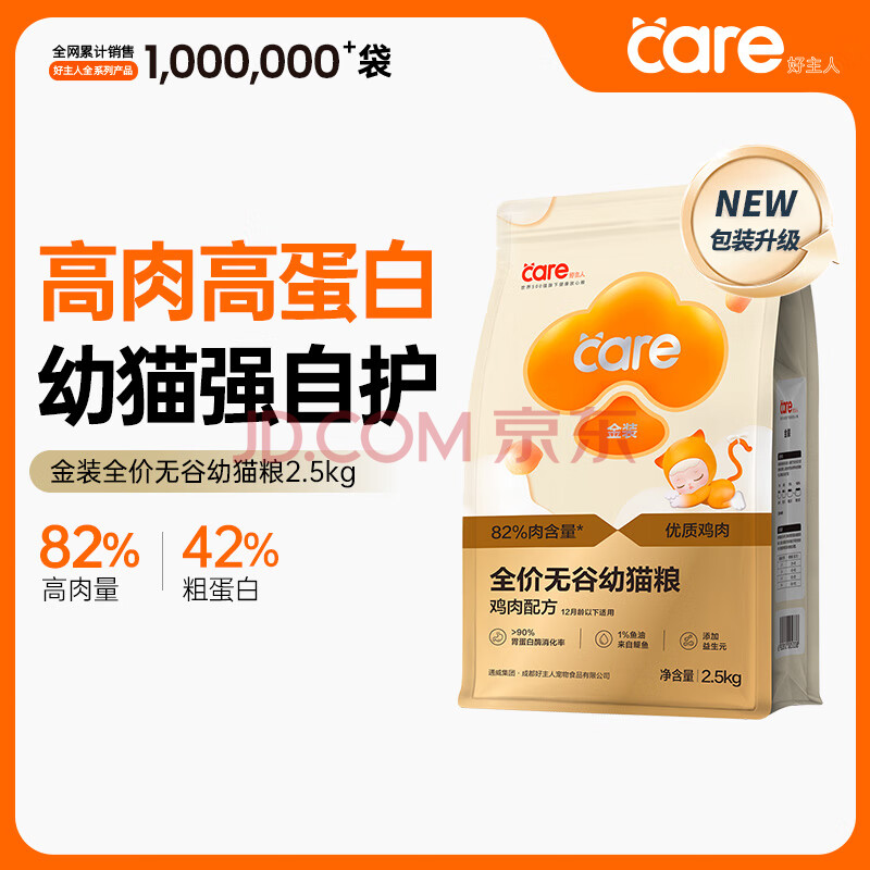 商品相册:好主人(CARE) 金装猫粮2.0 无谷猫粮 全价幼猫通用 82%含肉量2.5kg/5斤第