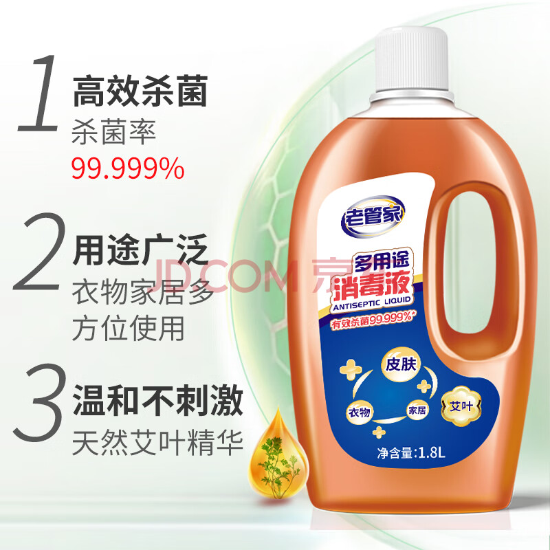商品相册:老管家多用途消毒液1.8L高浓度室内家居皮肤衣物消毒剂除菌液消毒水第