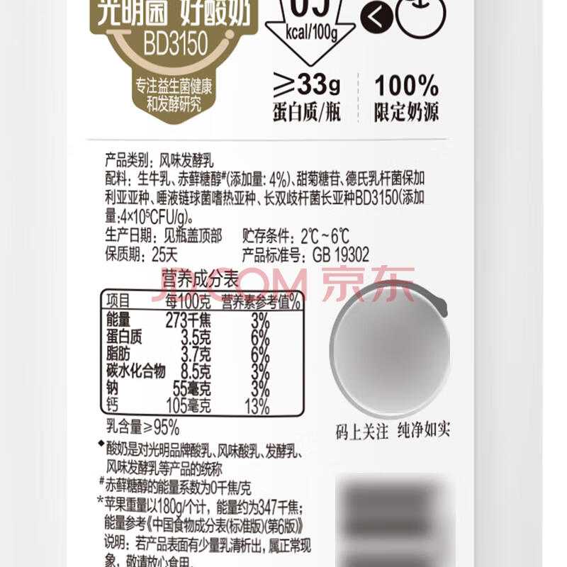 商品相册:光明 如实 原味 950g*1 风味发酵乳 酸奶酸牛奶 0蔗糖健康轻食第