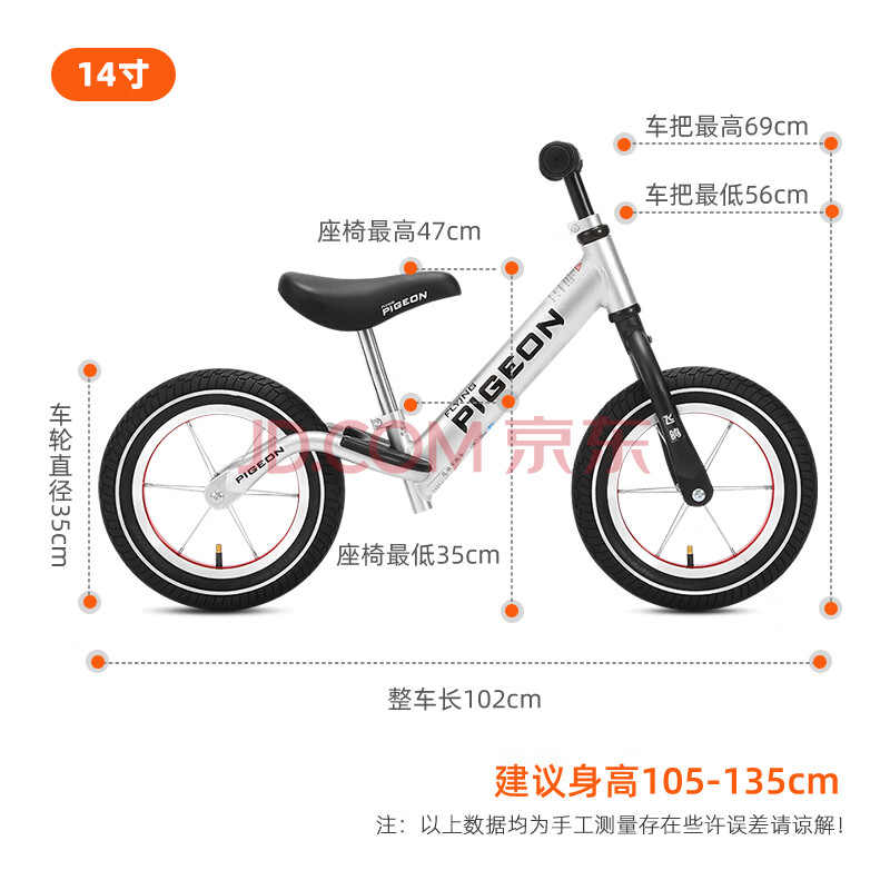 商品相册:飞鸽(FG FLYING PIGEON)儿童平衡车滑步车男女宝宝滑行车两轮无脚踏车童车自行车14寸银色第