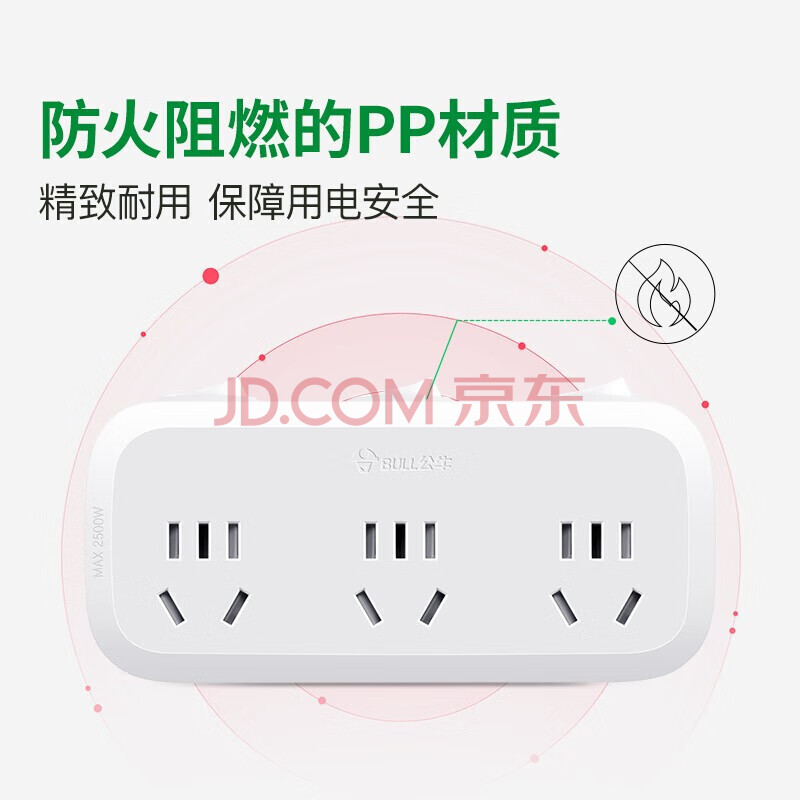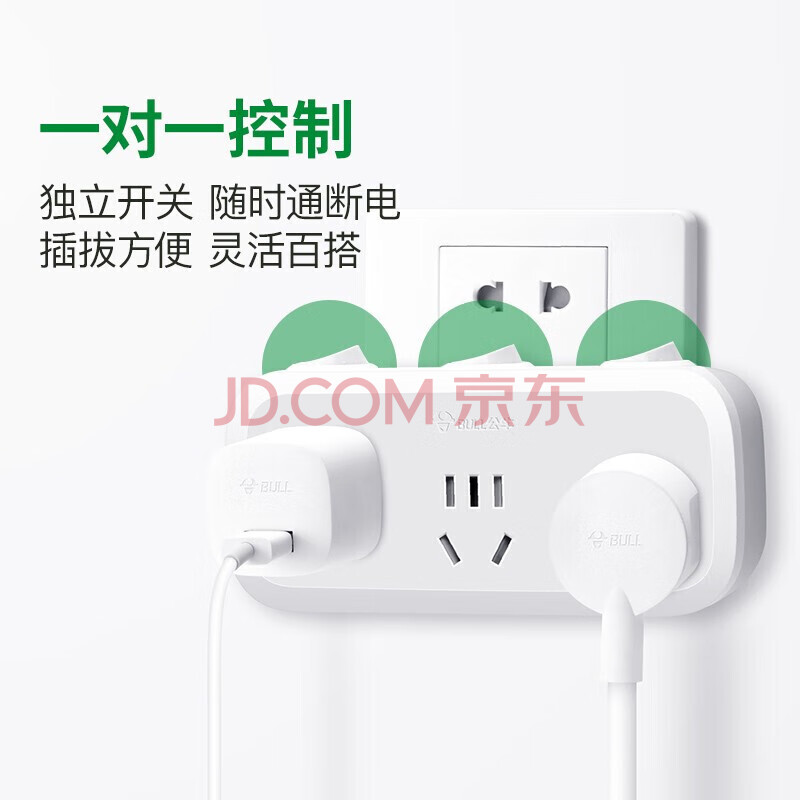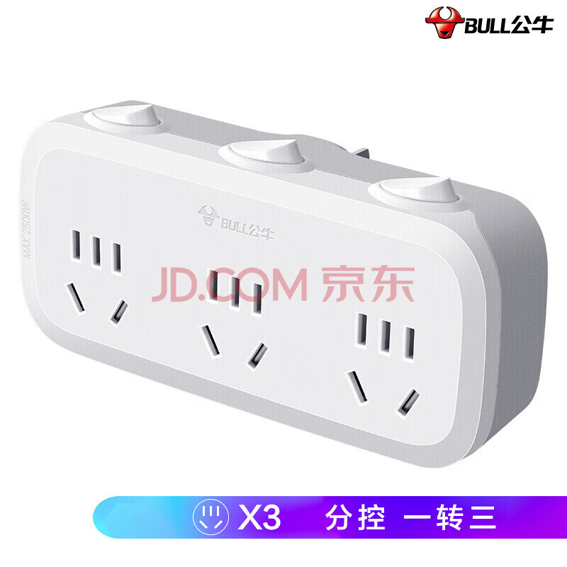 商品相册:公牛 GN-9333 一转三插座/无线转换插头/电源转换器 3位分控第