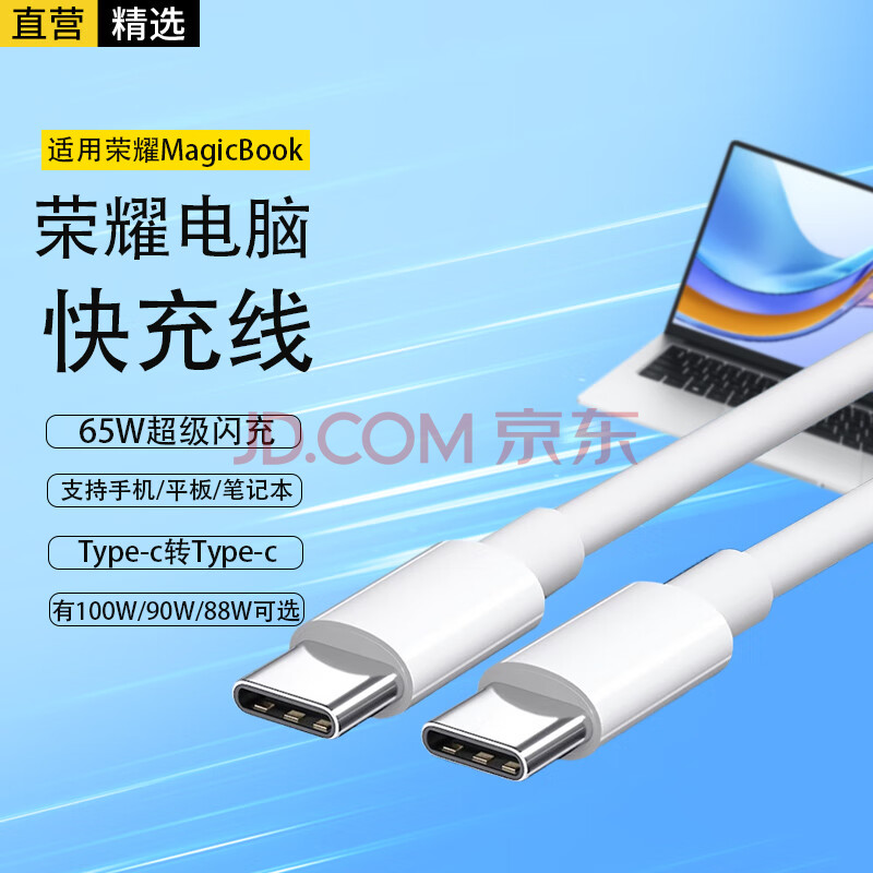 商品相册:轩邑 适用荣耀笔记本电脑充电线65W超级快充双头Type-c数据线通用MagicBook14/v14/x15/16pro 2米第