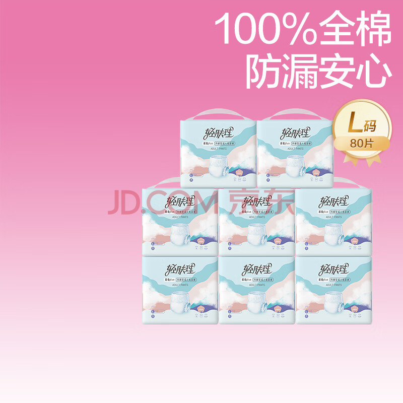商品相册:全棉时代优于新国标成人拉拉裤100%全棉防漏透气0致敏囤货装L80片京东自营第1张/共4