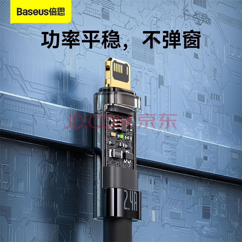 商品相册:倍思 苹果快充数据线2.4A充电器线 智能断电带灯 适用iPhone13promax/12/X/8/7Plus手机线2米 黑第