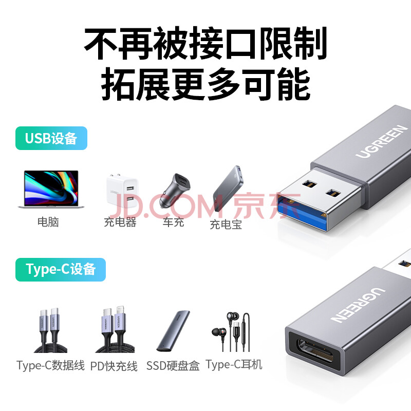 商品相册:绿联USB3.2转换Type-C转接头OTG适用苹果17/16/15充电数据线U盘华为安卓手机平板笔记本电脑耳机键鼠车第