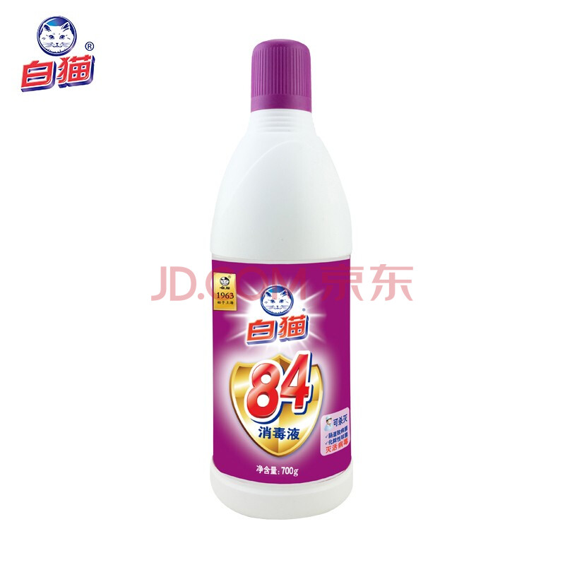 商品相册:白猫 84消毒液700g*12瓶(整箱装) 除菌杀菌家用清洁 厨房浴室甲流感第