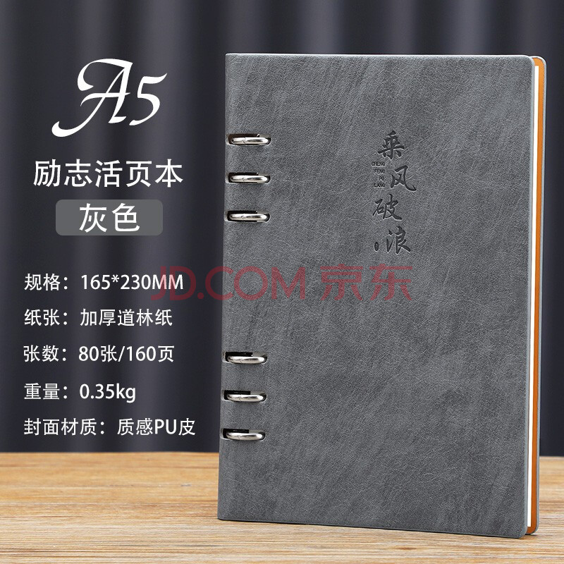 商品相册:嘉然恒 活页本a5加厚笔记本本子创意励志封面商务办公文具记事本可拆卸替换内芯会议记录本可定制 灰色第
