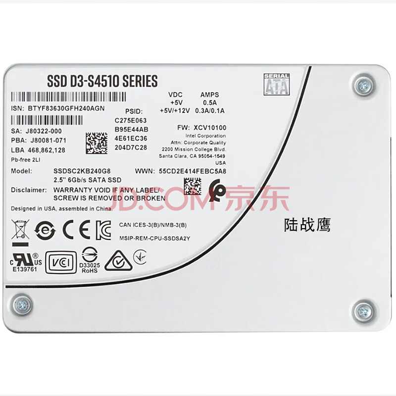 商品相册:博鑫佳华 D3-S4510(含RH2288v5专用托架) 960GB 读取密集型固态硬盘第1张/共4