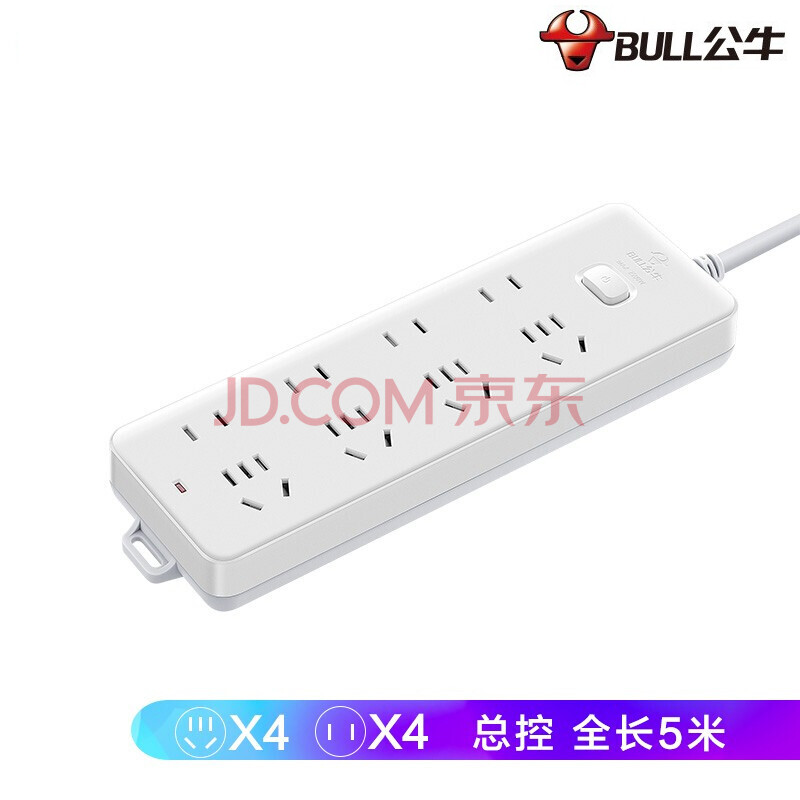 商品相册:公牛 GN-403 新国标插座/插排/接线板/插线板 8孔插排 8位总控 全长5米第