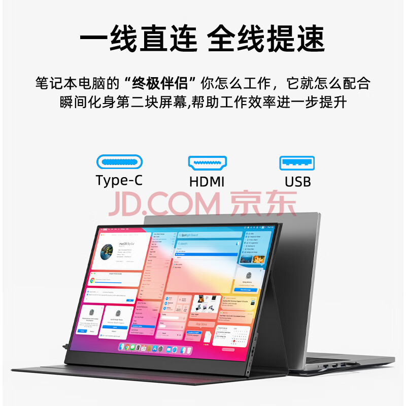 商品相册:Eimio便携式显示器15.6英寸便携屏 显示屏扩展屏 电脑手机笔记本 PS4/5 Switch副屏一线直连E16第