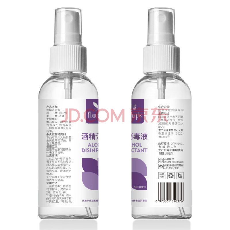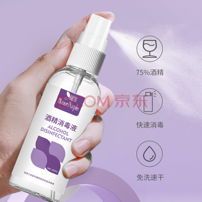 商品相册:阅紫 75%酒精消毒液喷雾100ml 起售量:100瓶起售第
