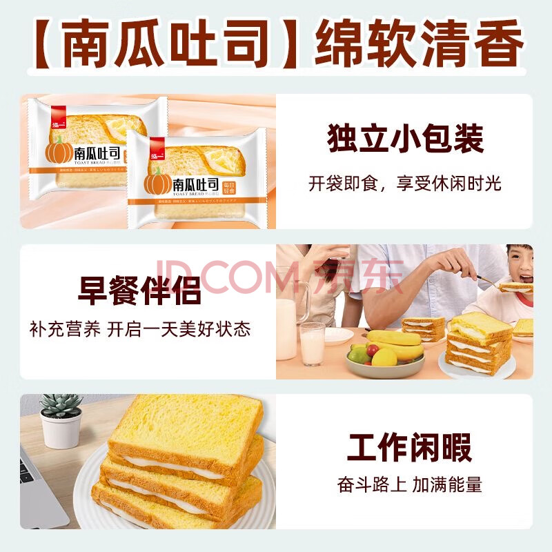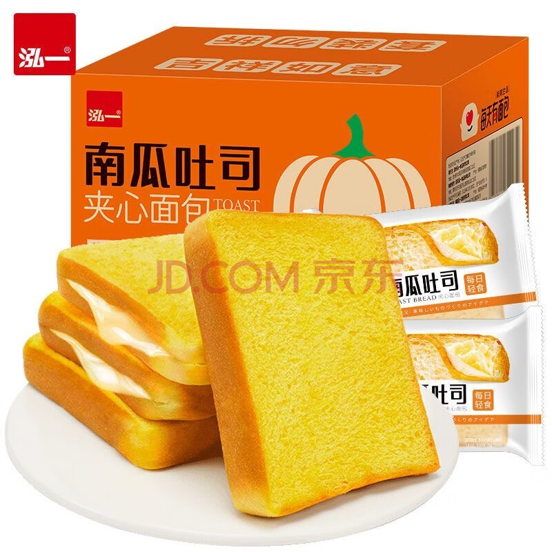商品相册:泓一南瓜吐司面包 手撕面包早餐代餐粗粮零食办公室糕点点心400g/箱第1张/共6