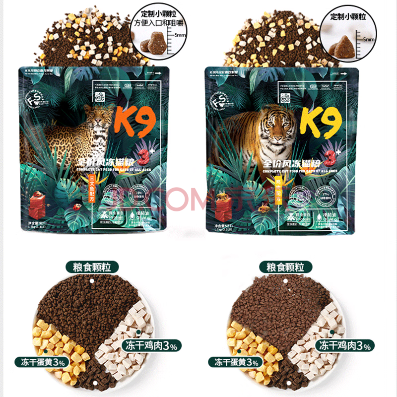 商品相册:K9冻干三拼猫粮昆虫蛋白低敏无谷干粮成猫幼猫通用三文鱼味1.5kg第