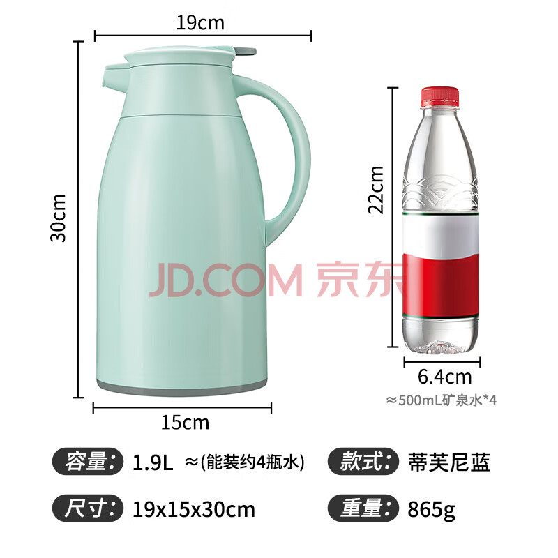 商品相册:JEKO&JEKO保温壶家用热水瓶暖水壶大容量宿舍开水瓶玻璃内胆 1.9L淡蓝色第