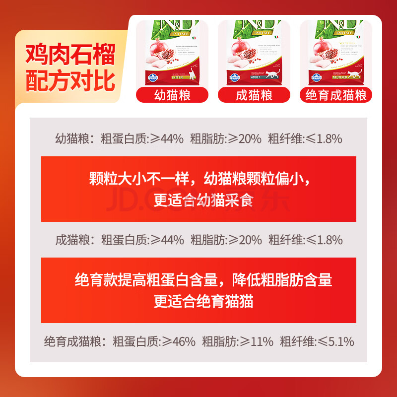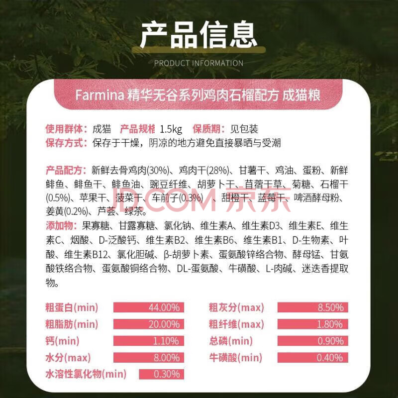 商品相册:法米娜(Farmina)进口猫粮石榴鸡肉成猫粮1.5kg 无谷高蛋白营养长肉第