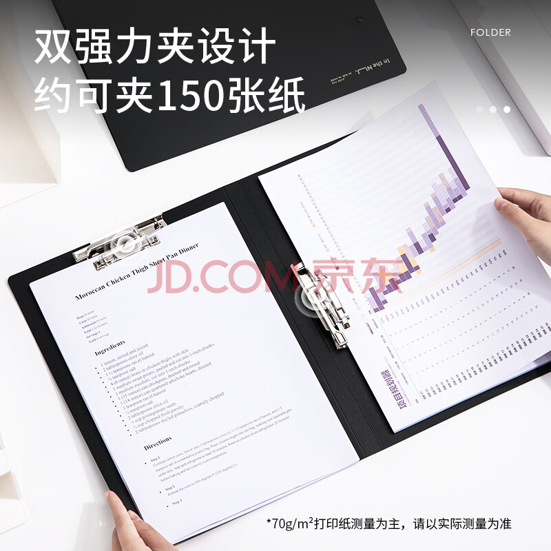 商品相册:得力文件夹会议夹 双强力夹耐用资料报告商务办公学生试卷夹板文件收纳 曜石黑NS182第