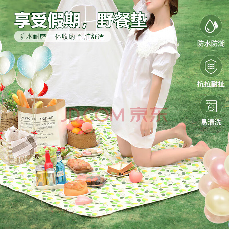 商品相册:格术野餐垫露营垫加厚加大防潮垫户外地垫野炊可折叠便携草坪坐垫子绿第