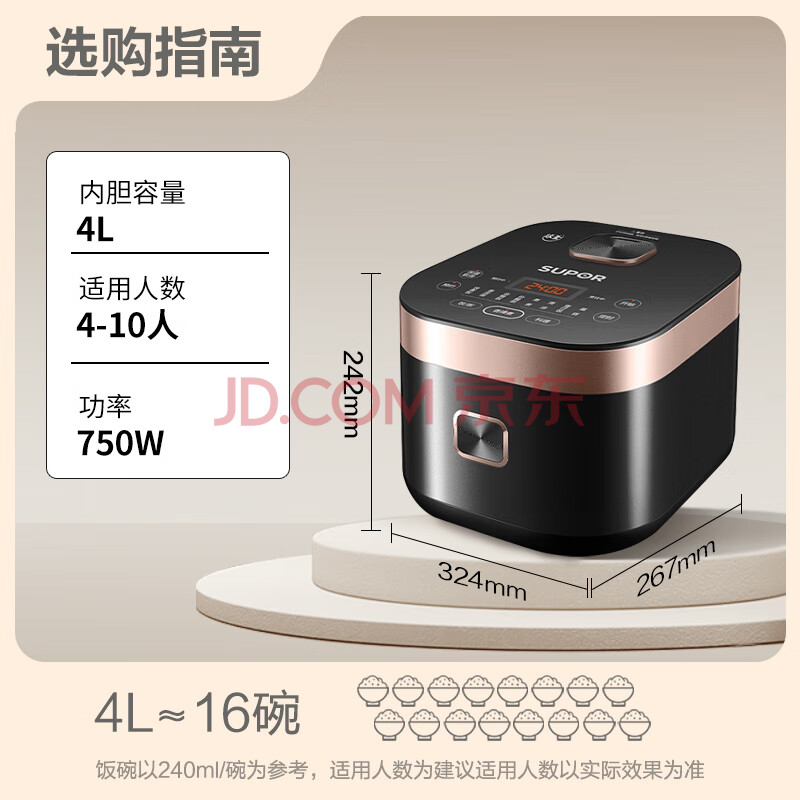 商品相册:苏泊尔(SUPOR)ZMD安心系列 触控面板 9大功能 内盖可拆 24小时预约 微压 球釜内胆 4L电饭煲SF40FC375第