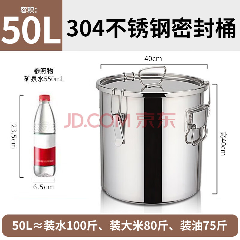 商品相册:全适304加厚不锈钢密封桶牛奶桶米桶发酵桶汤锅装水米油储物桶40*40cm第