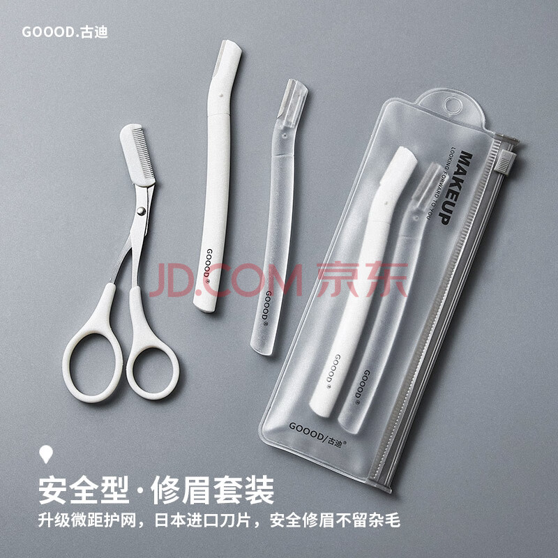 商品相册:古迪GOOOD日本进口安全修眉刀(3把装)防护网不易伤肤 初学者剃眉刀塑眉形 刮眉毛刀 盒装便捷第