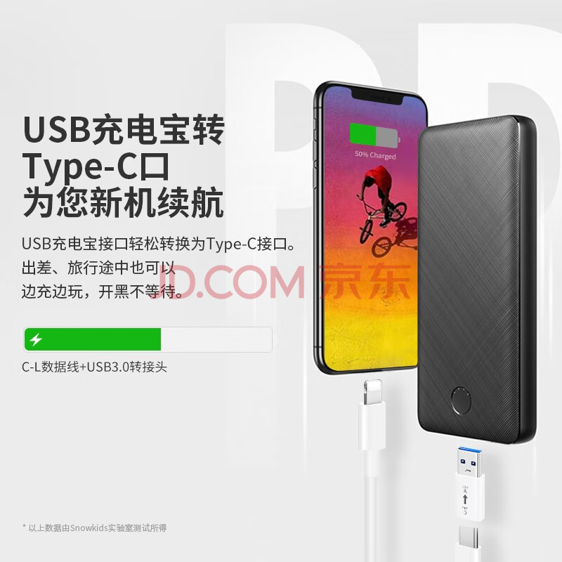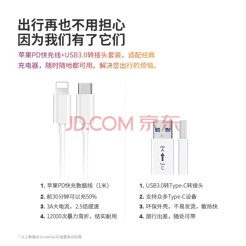 商品相册:Snowkids苹果数据线PD快充加固加粗不伤机iphone14/13/12/11/xsmas/xr充电线转换头转接头Type-C转USB转接第