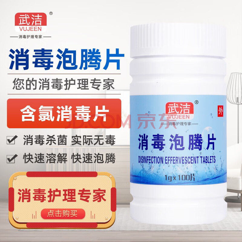 商品相册:武洁含氯84消毒泡腾片洗衣机含氯消毒片杀菌衣物瓜果蔬菜消毒液100片第