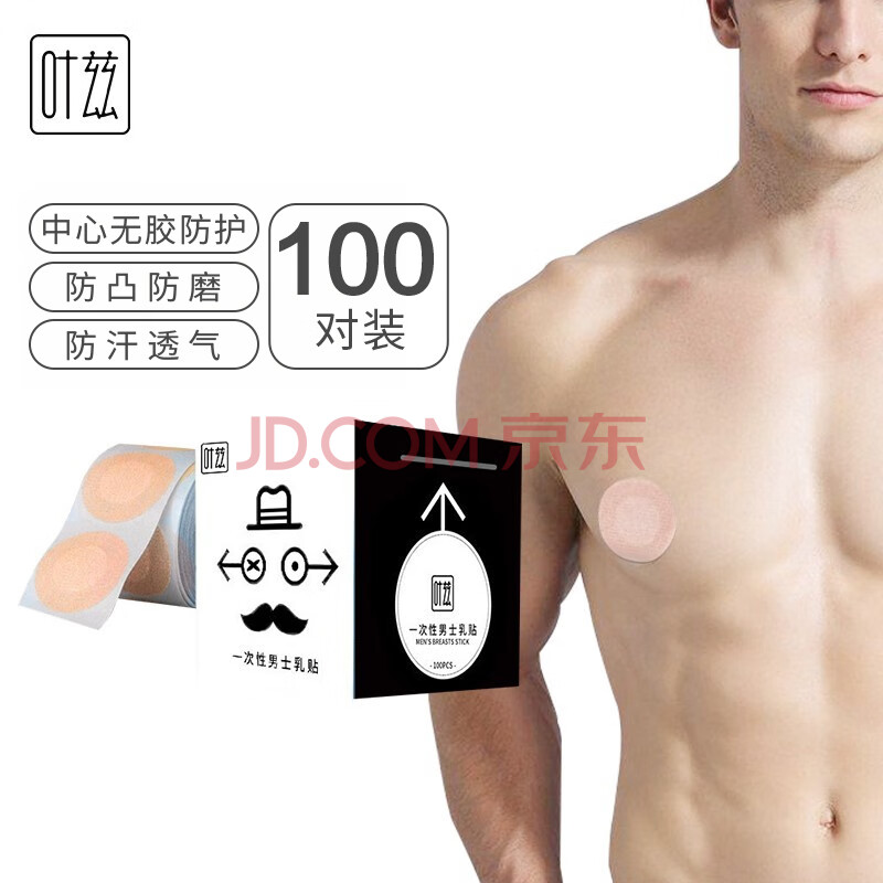 商品相册:叶兹 一次性男士乳贴游泳跑步马拉松专用防滑防汗防摩擦3.5cm/200片装第