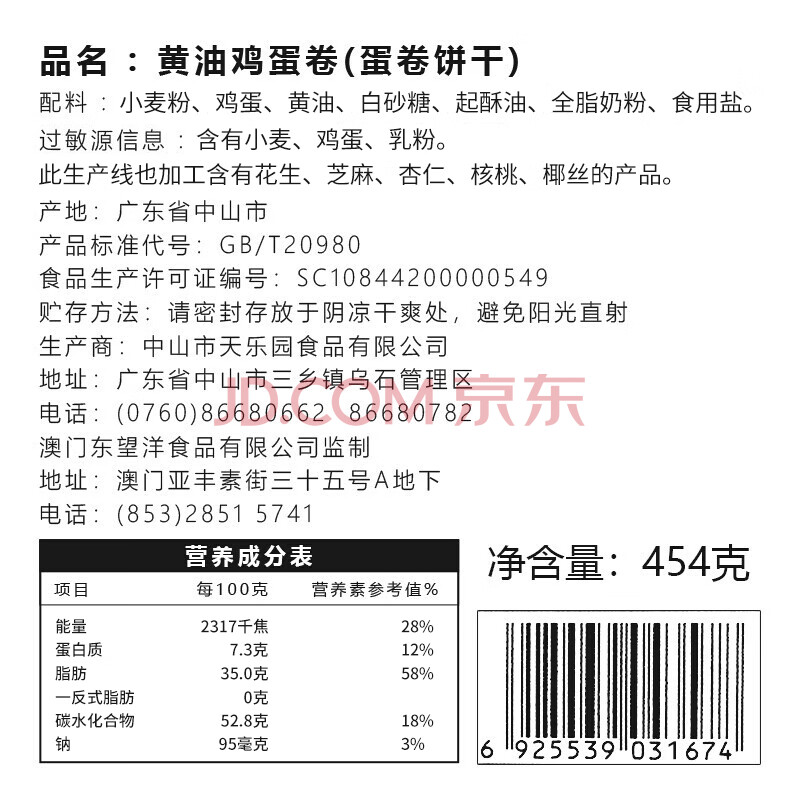 商品相册:东望洋进口黄油鸡蛋卷454g新年货节礼盒伴手礼信儿童饼干糕点零食第