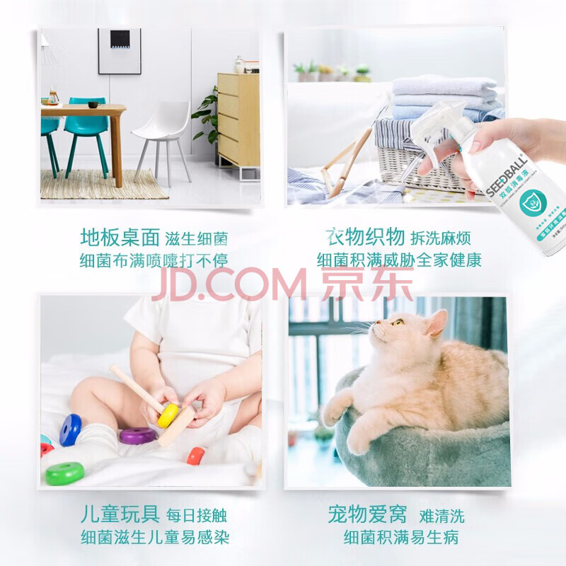 商品相册:SEEDBALL环境物表消毒喷雾500ml双胍成份不含酒精马桶鞋袜衣物多用途杀菌第