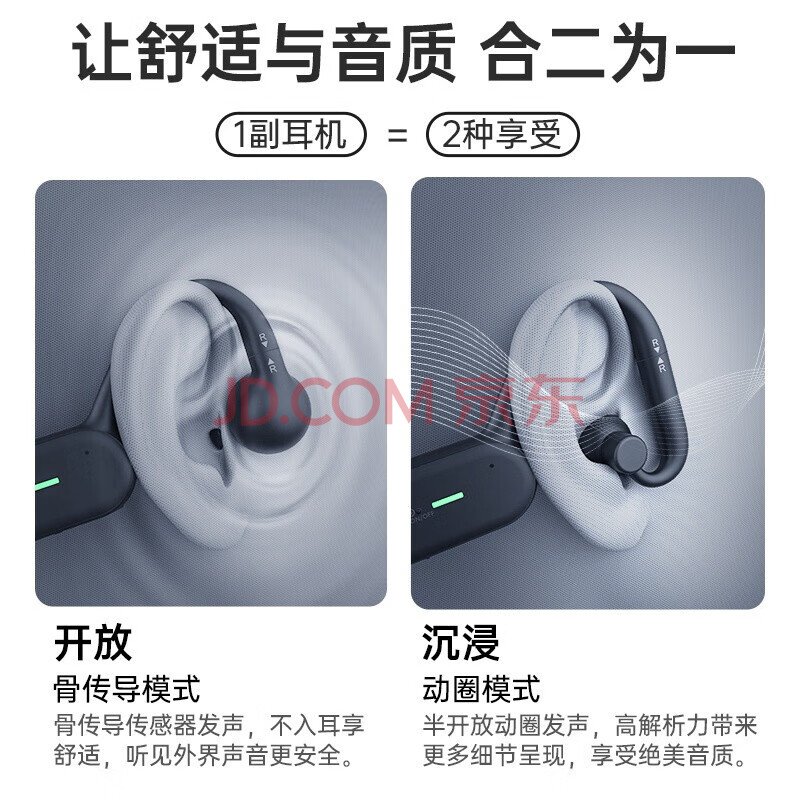 商品相册:大康 G100运动蓝牙耳机骨传导动圈双模切换 不入耳入耳防水降噪跑步音乐无线耳机 适用于苹果华为 黑色第