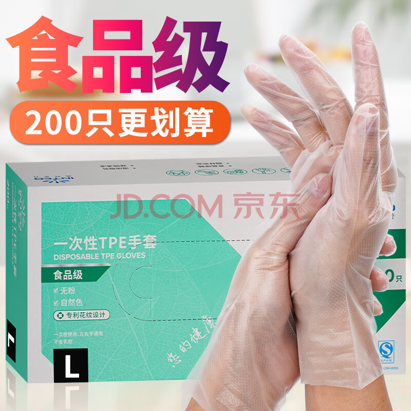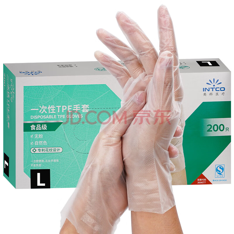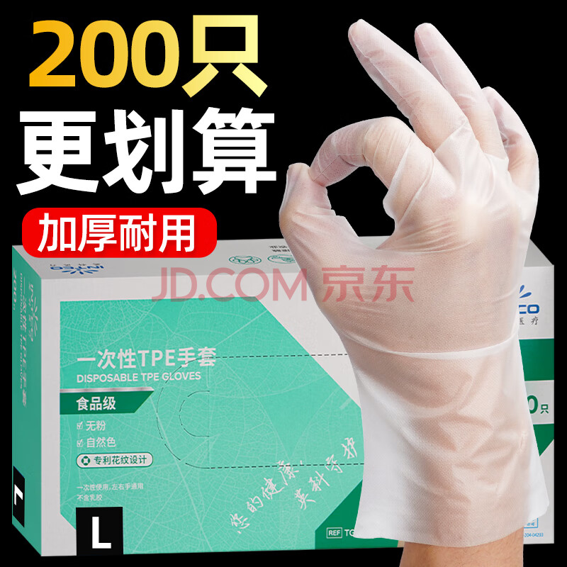 商品相册:英科医疗(INTCO)一次性手套TPE手套200只大码食品级手套家务厨房清洁餐饮小龙虾第