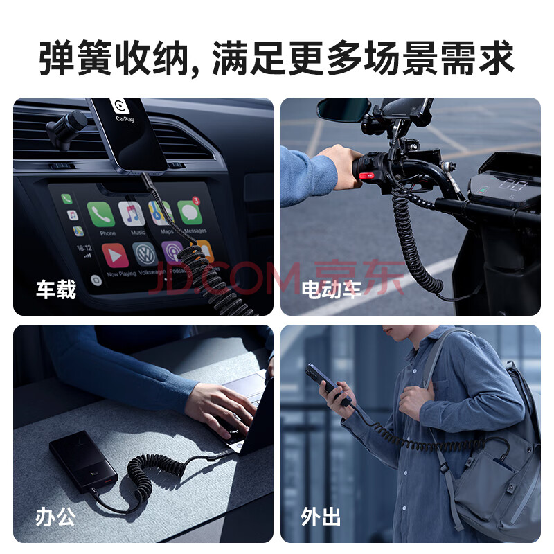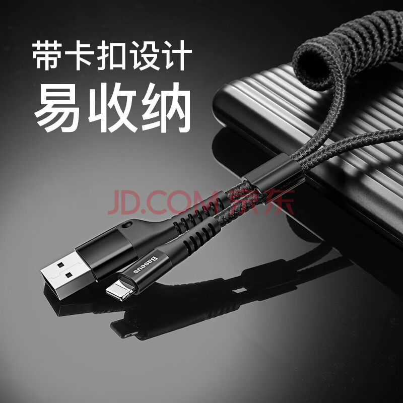 商品相册:倍思 苹果数据线 弹簧伸缩车载手机充电线 便携车充 适用iphone14/13/12/11/8Plus/X/iPad/Air/Pro1米第