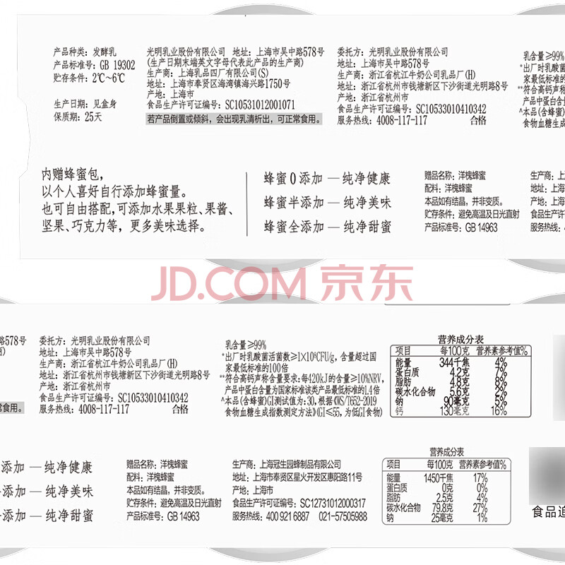 商品相册:光明如实 洋槐蜂蜜原味 135g*3 发酵乳酸奶酸牛奶 0蔗糖健康轻食第
