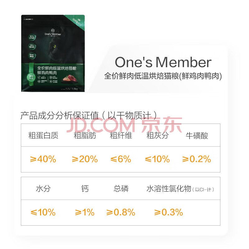 商品相册:1号会员店(One's Member)全价无谷鲜肉低温烘焙猫粮 鸡鸭肉配方 1.5kg第
