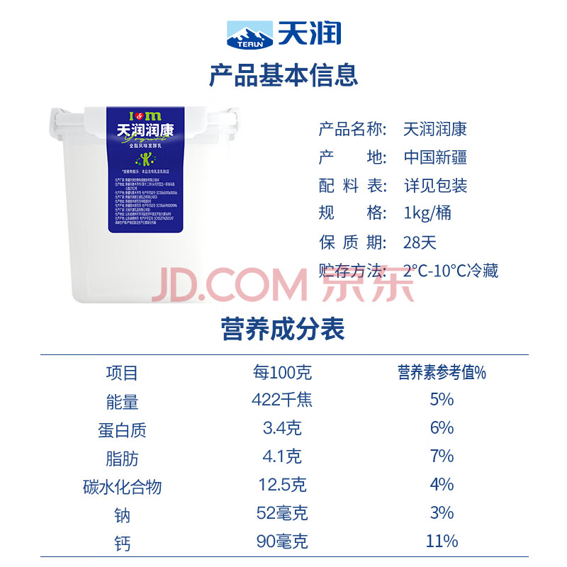 商品相册:天润(TERUN)新疆酸奶 润康方桶 低温酸奶酸牛奶老酸奶 大桶酸奶 1kg*1桶第1张/共6