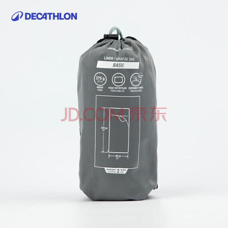 商品相册:迪卡侬户外隔脏睡袋内胆郊野徒步登山旅行薄款轻盈便携内胆灰色 4017485第