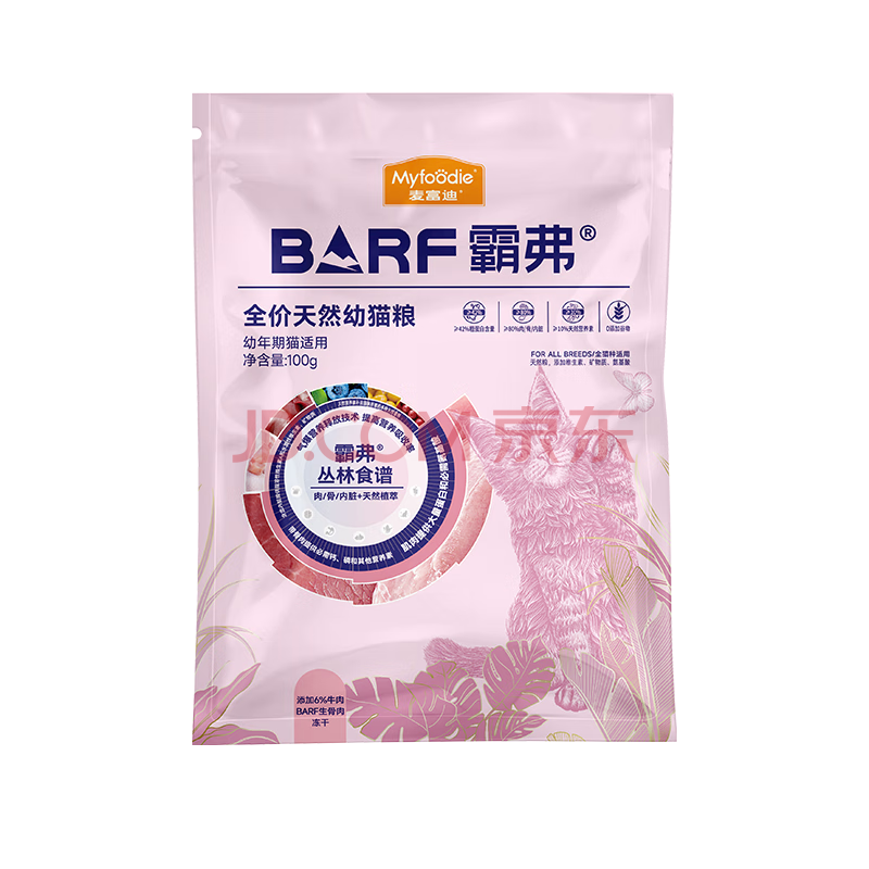 商品相册:麦富迪猫粮barf霸弗天然猫粮冻干奶糕幼猫粮高蛋白温和养护肠胃牛肉100g第