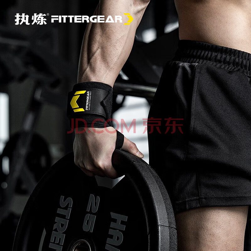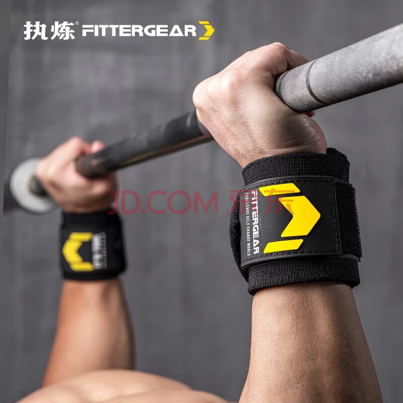商品相册:FITTERGEAR执炼健身护腕男卧推护手腕举重力量训练防扭伤运动绷带 黑色一对第