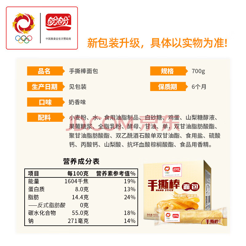 商品相册:盼盼 手撕面包棒700g 营养早餐食品软面包点心休闲零食小吃 奶香味第1张/共4