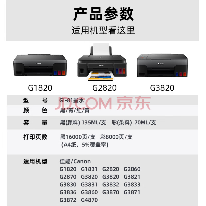 商品相册:V4INK GI-81墨水四色(适佳能G3871 G3820 G2860 G3860 G3821 G3870墨水G1820 G2820 G4870 G3836打印机墨水)第