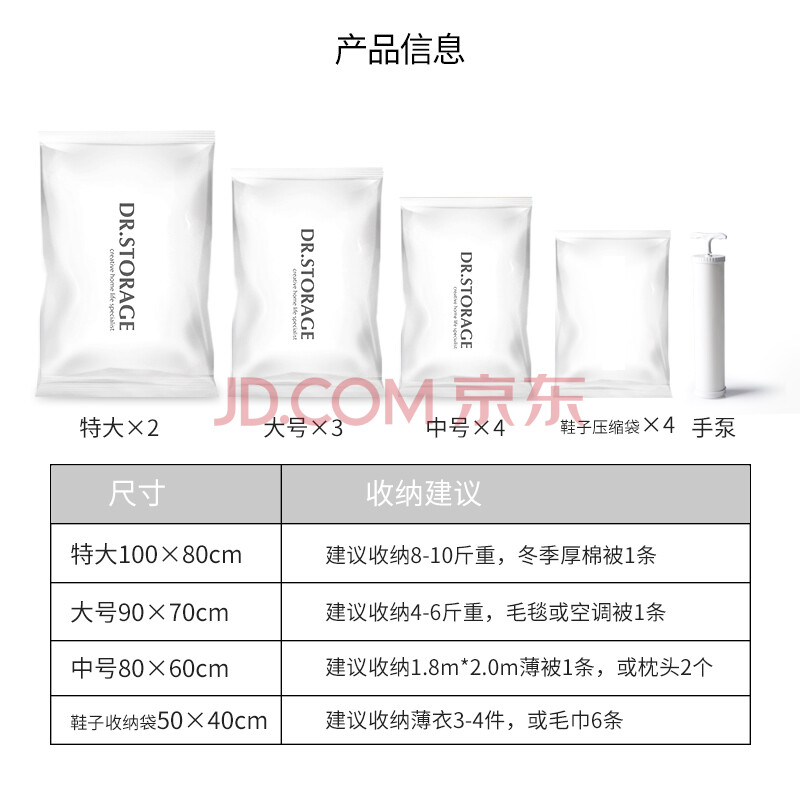 商品相册:收纳博士真空压缩袋收纳袋棉被衣物真空袋打包整理袋15件套第