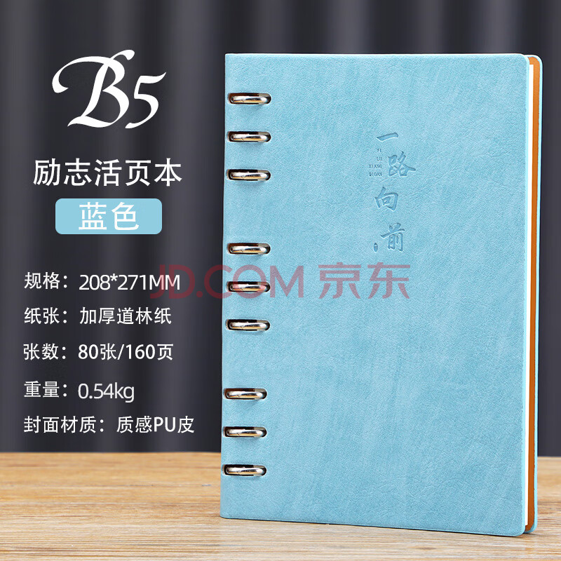 商品相册:嘉然恒 活页本B5大号加厚笔记本本子创意励志封面商务办公文具记事本可拆卸替换内芯会议记录本可定制 蓝色第