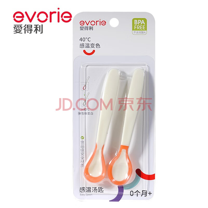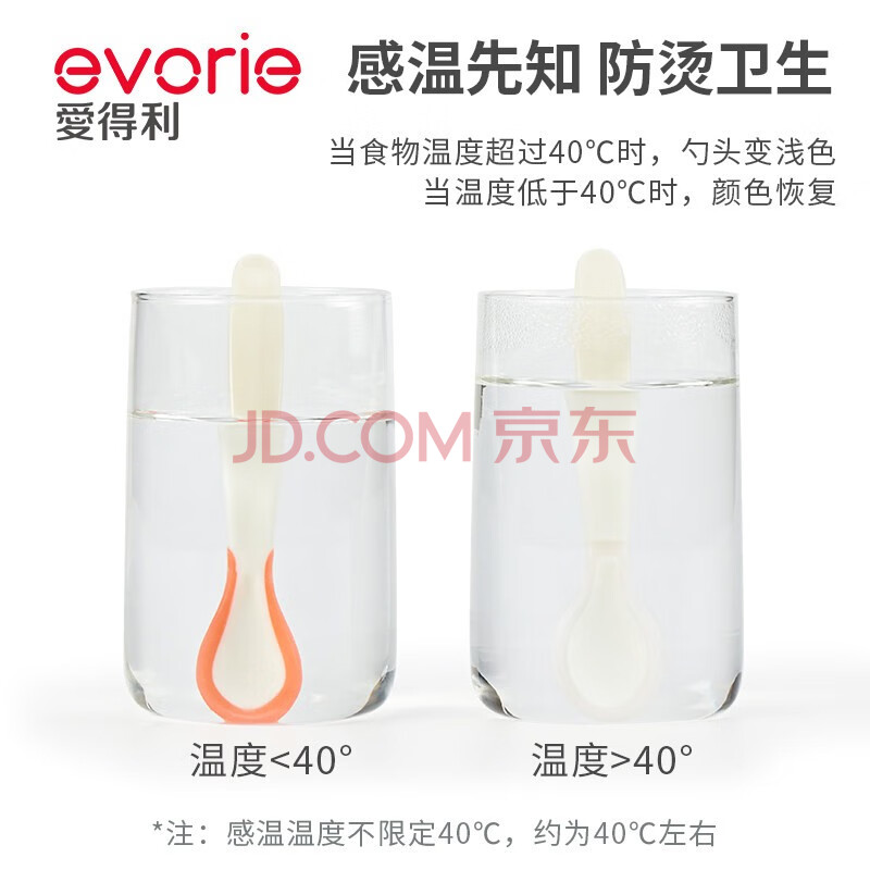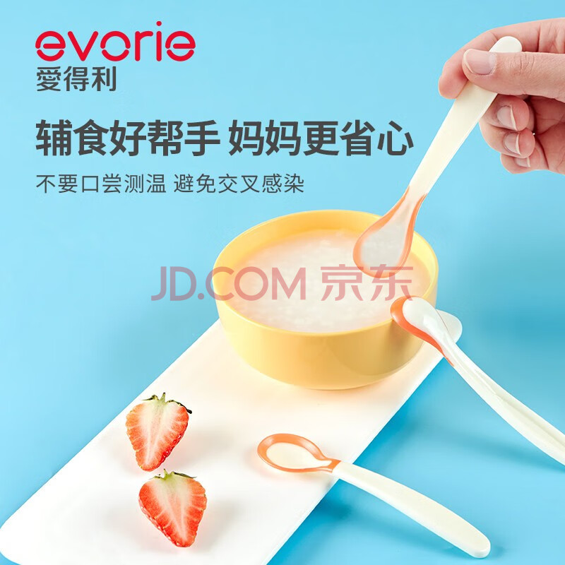 商品相册:爱得利(evorie)婴儿勺子汤匙 儿童餐具感温勺 两只装 (米白色) 0个月以上第